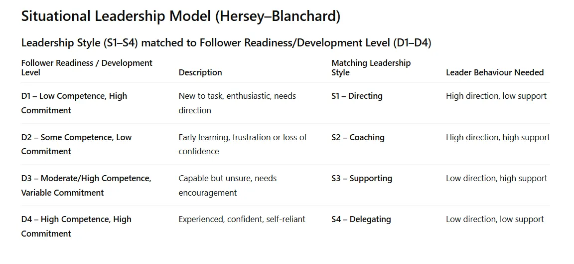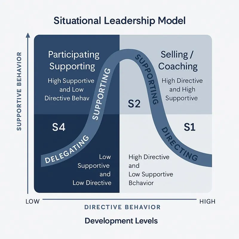Once you’ve identified the development level, you match it to the leadership style that unlocks performance.